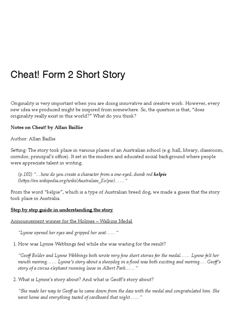 Cheat Form 2 Short Story 4skills Academic Pdf